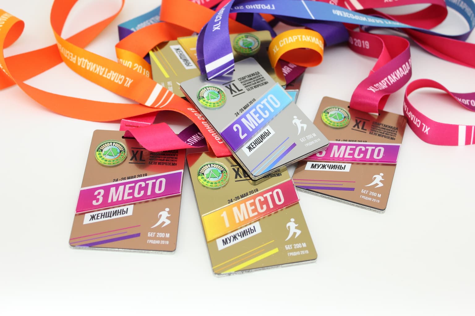 Медаль ГИПРОЗЕМ изготовлена из металла 3 мм, пластика ROWMARK с прямой UF печатью изображения и элементов из оргстекла с печатью с обратной стороны. В качестве ленты использовался цветной ланъярд.