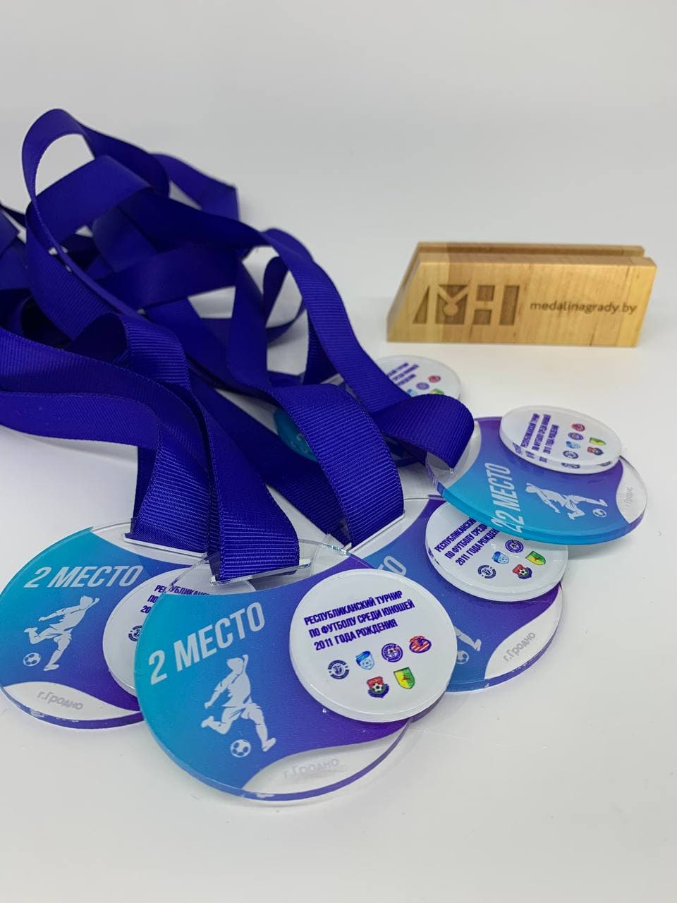 Оригинальная медаль для победителей турнира по футболу среди юношей 2011 года. Изготовлена памятная медаль из оргстекла (ПММА) в несколько слоев, с использованием лазерной резки. Печать нанесена УФ способом. ОДО “СТУДИЯ РЕКЛАМЫ” в рамках проекта МЕДАЛИНАГРАДЫ может изготовишь медали и награды любой сложности по индивидуальному заказу из оргстекла, металла, стекла, фанеры, дерева.